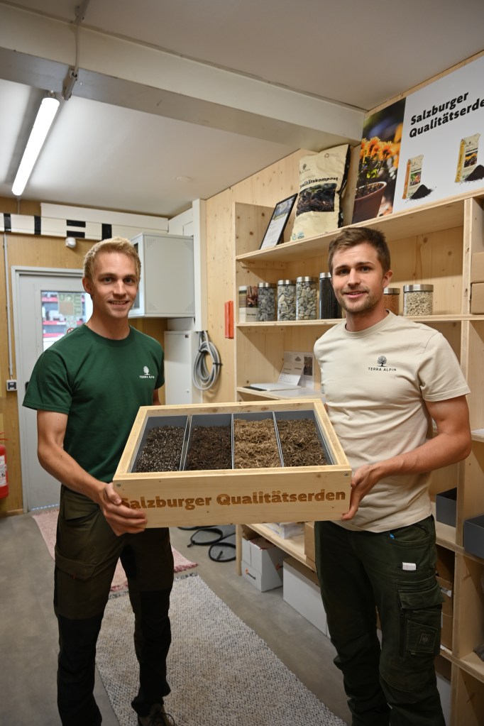 „Wir hatten alle Komponenten, aber noch nicht das fertige Produkt, wodurch wir eine bessere Wertschöpfung generieren können. Deshalb gründeten wir 2023 die Marke Terra Alpin“, sagt Philipp Klausner. Er ist für Forschung, Entwicklung und Webauftritt verantwortlich, Fredrik Parigger für die Gesamtorganisation und Abwicklung aller Prozesse. Für den Markenauftritt riefen die Jungunternehmer einen Designwettbewerb für Salzburger Qualitätserde aus, den Hannah Gruber gewinnen konnte. Sie studiert in Kuchl Design- und Produktmanagement, steht kurz vor dem Masterabschluss und ist Teil des Kernteams.